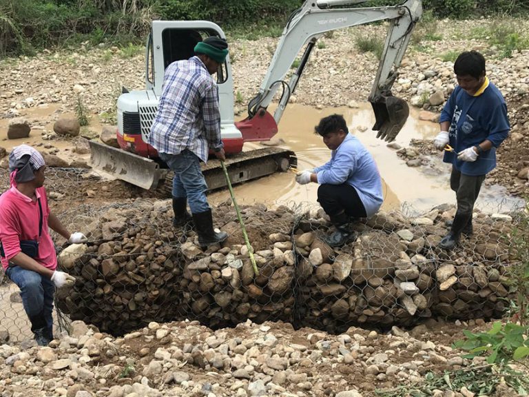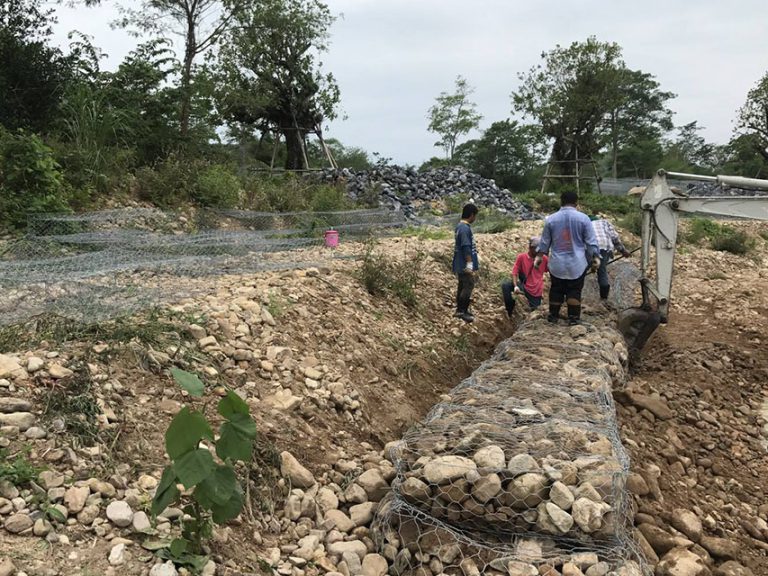 Gabion ป้องกัน จ.สระบุรี งานป้องกันการกัดเซาะจากน้ำป่าไหลหลากในหน้าฝน สำหรับที่ดินที่ติดลำน้ำ เรารับออกแบบและรับเหมาติดตั้งโดยใช้หินในพื้นที่เดิมและหินโรงโม่ในการติดตั้งร่วมกันเพื่อลดต้นทุนให้กับลูกค้าได้